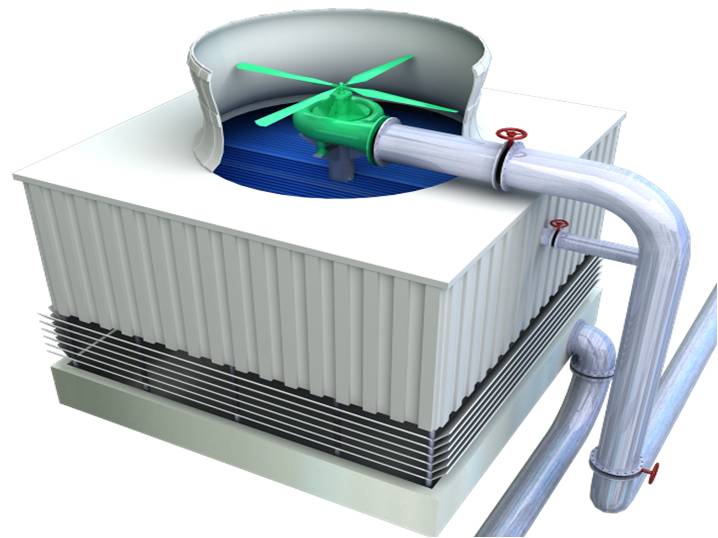 因取消了電機和減速機,降低了冷卻塔的運行時機械噪音,水輪機冷卻塔運行噪音比傳統(tǒng)冷卻塔降低很多。